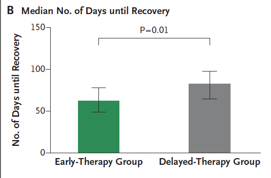 “But if it’s just the average person that came back 3 weeks earlier, some must have taken longer to come back by not resting”. Wrong again. The longest it took an individual in the early intervention group to return to their sport was 77.8 days. The AVERAGE for the delayed treatment group was 83 days. That means the worst outcome from the 25 people in the early treatment group STILL DID BETTER then the average of the delayed intervention group.
