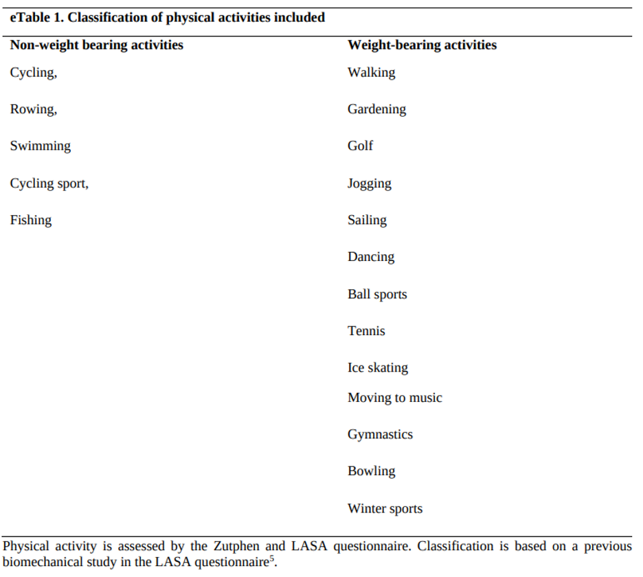 An example of which activities were classified as weight bearing or non-weight bearing activities is listed in table 1.