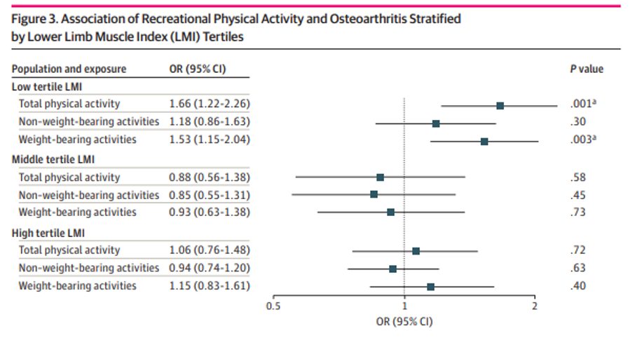 In conclusion, when it comes to the role of physical activity and developing osteoarthritis of the knee (and likely lower limbs at large) maybe instead of focusing on weight loss we should be focusing on lean muscle mass?