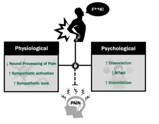 So why is there power in a taboo work or gesture when it comes to acute pain? Authors have theories, but none of them proven. Some of the proposed theories include disruption of pain processing, increased sympathetic nervous system response, physiological distraction or use of humour to improve affect.