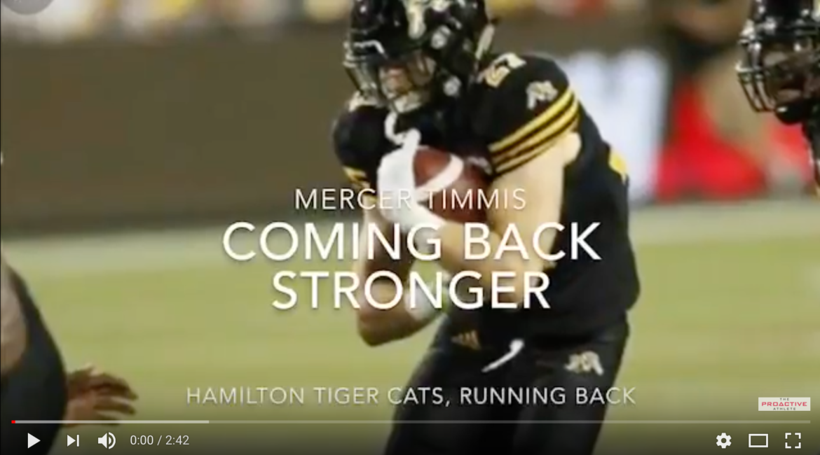 In the last 10 months Mercer Timmis, running back for the Hamilton Tiger Cats, has done just that…turning a season ending fractured leg into an opportunity.