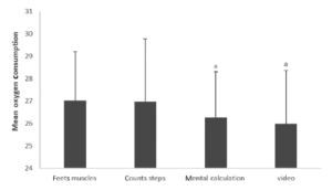 Likely the most important measure in running is oxygen consumption. You will notice a significant association where associative internal condition running (thinking about your foot muscles) was the worst. Dissociative external running (watching a basketball game) was the best! Essentially the more you are distracted, the better your running VO2max.