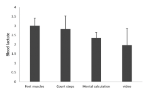 The second most important measure was blood lactate levels. This is an indirect measure of your running economy. The higher your lactate after running, the worse your economy. AGAIN, the results favor distracted running.